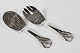 Dansk Sølvsmed Tretårnet fiskeserveringssæt med håndgraverede fisk og planter Med stempel fra 1959 Længde 21,5 cm Fin stand uden monogram