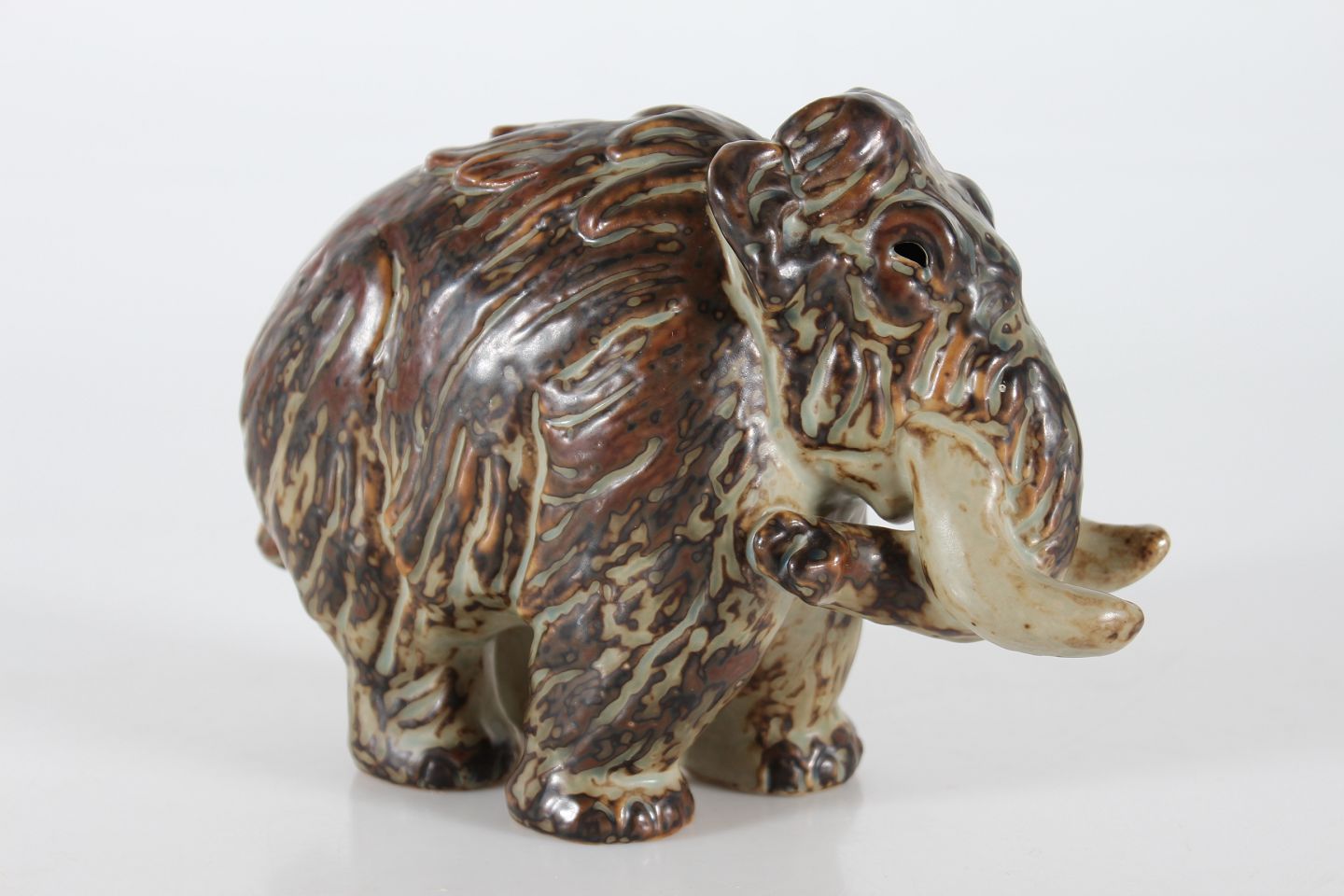 Knud Kyhn (1880-1969) Mammut figur nr. 21839 Fremstillet af stentøj dekoreret med sungglasur Sign KK for Knud Kyhn Højde 15 cm Længde 21cm Fin fejlfri 1 sortering
