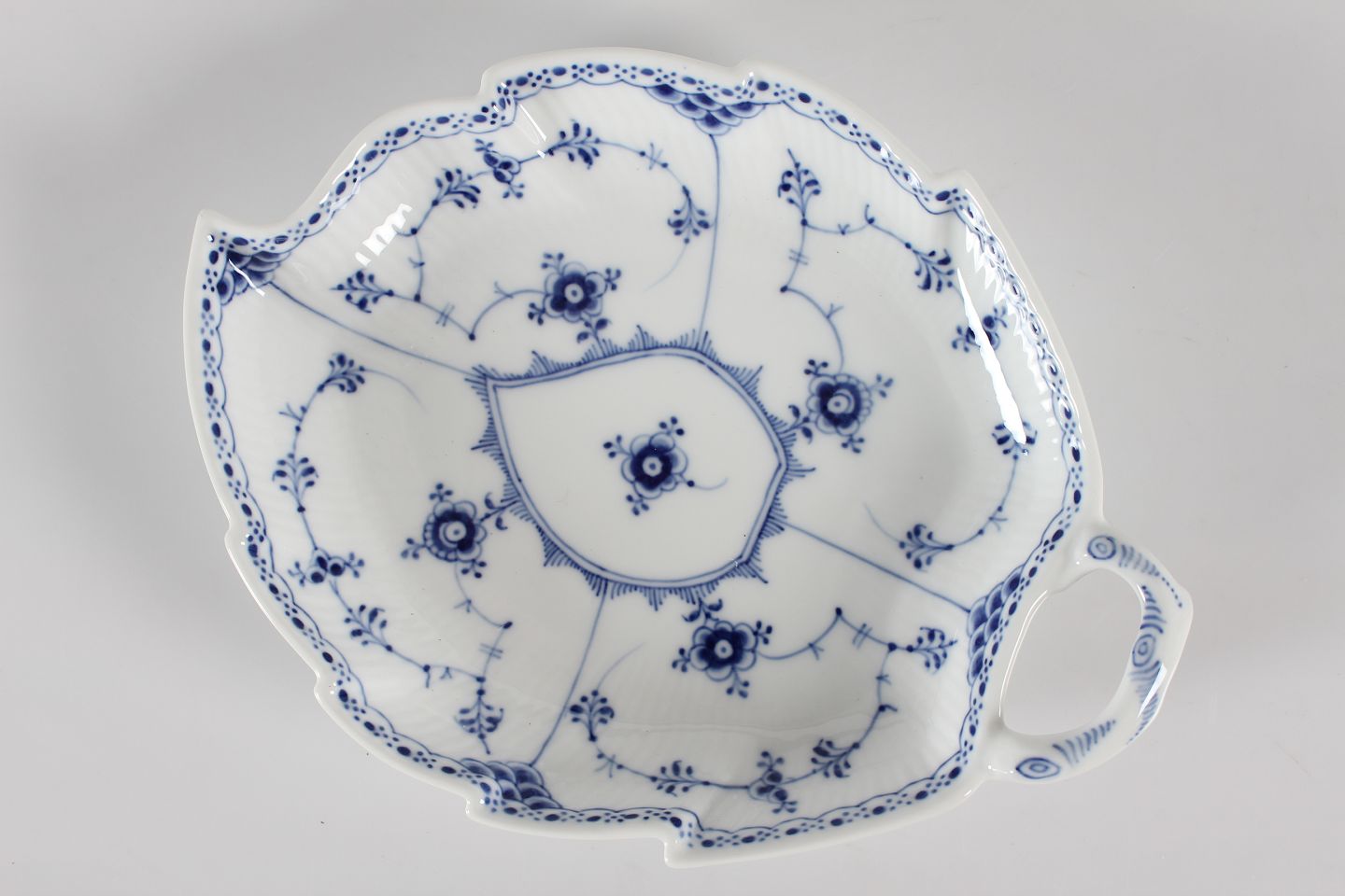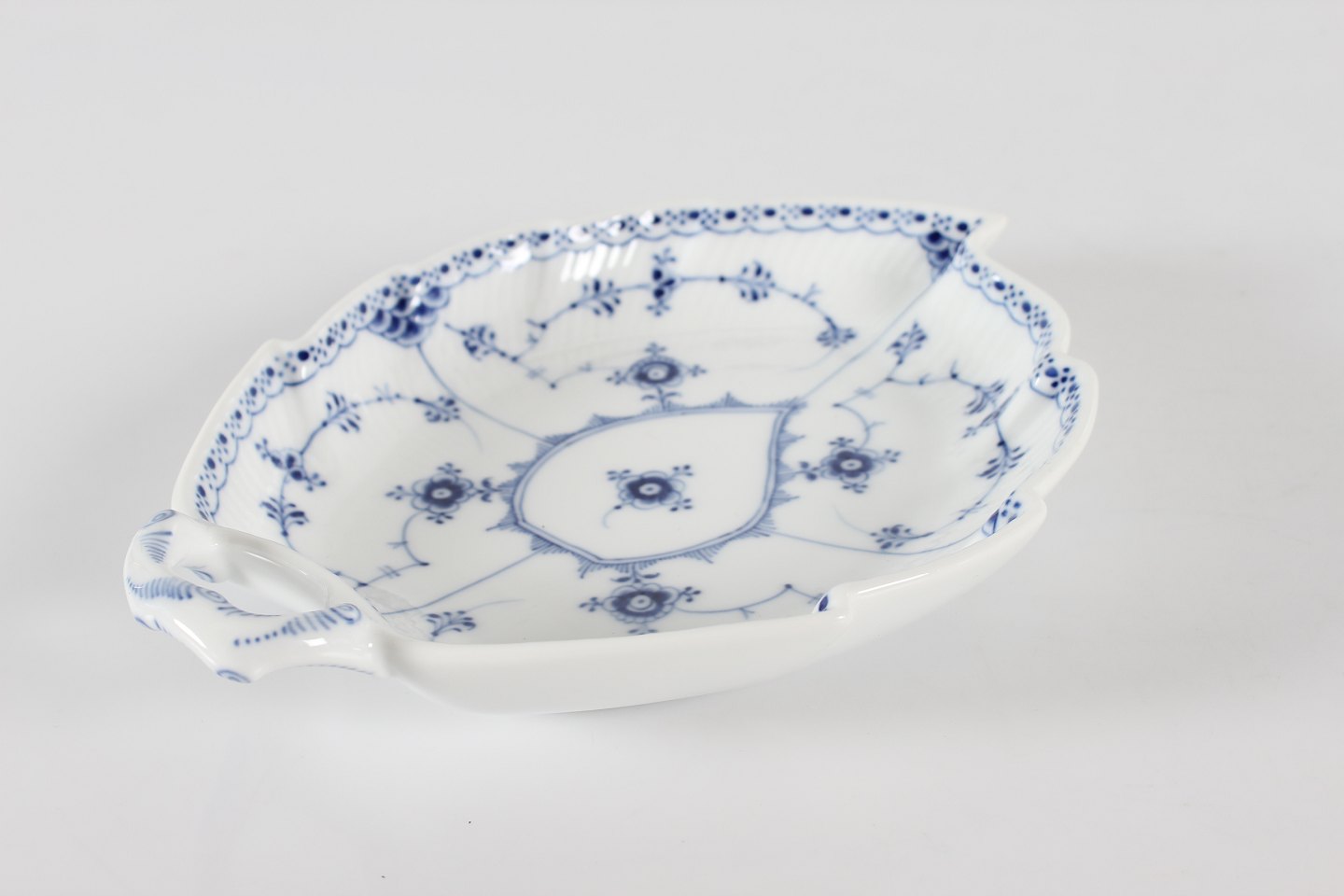 Royal Copenhagen Musselmalet Halvblonde Bladformet serveringsfad nr. 1/549 med stempel fra perioden 1923-34 Længde 26,5 cm Bredde 20 cm 1. sortering fin stand uden skår