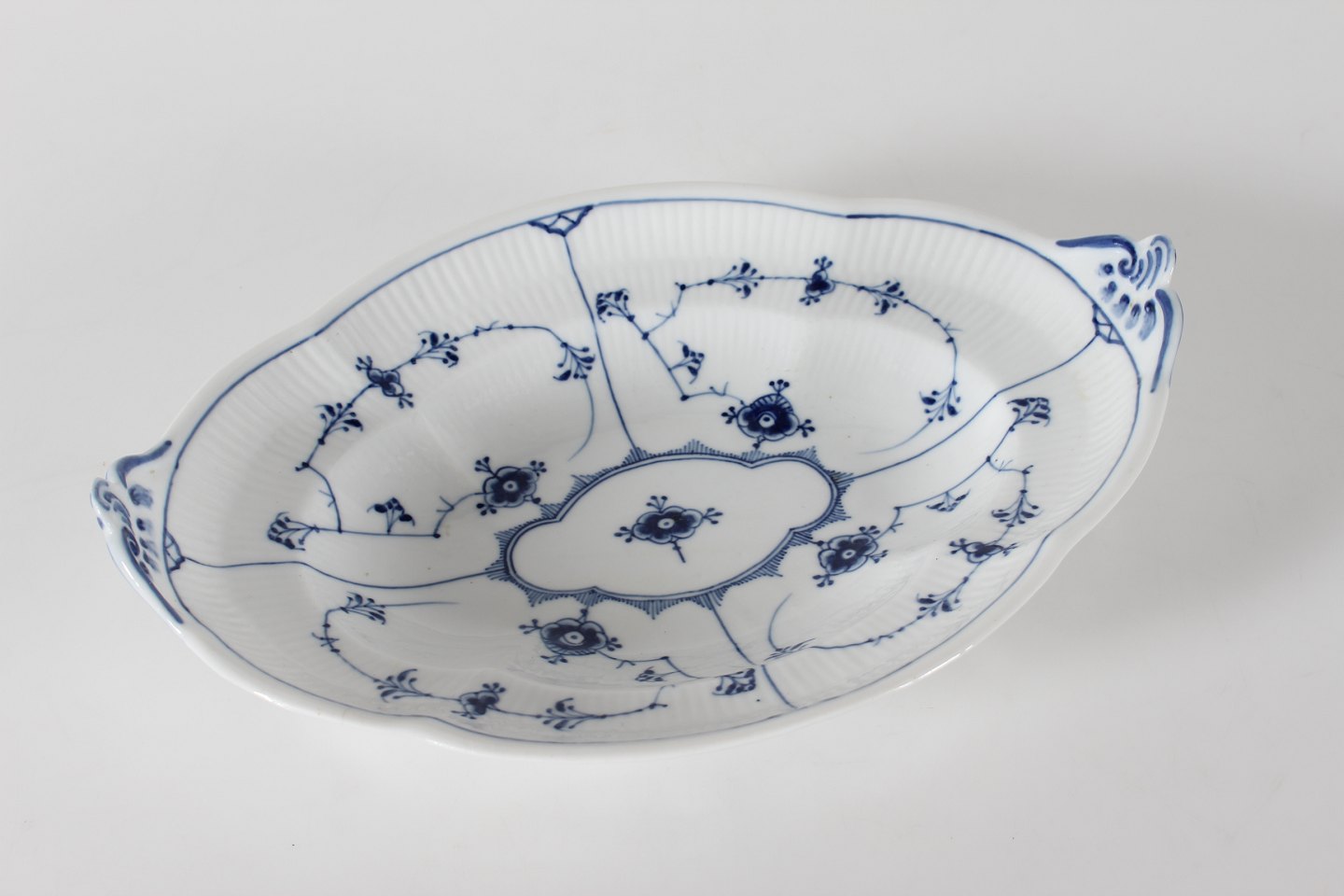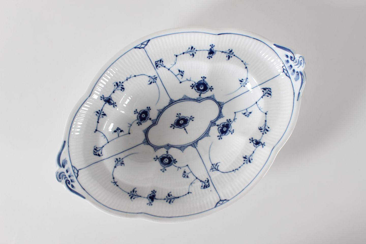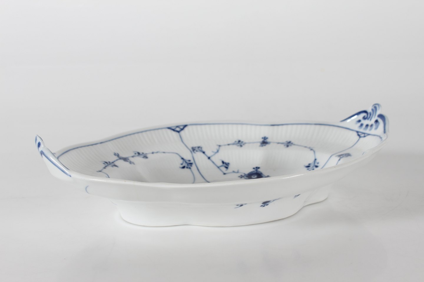 Royal Copenhagen Musselmalet Riflet Sjældent serveringsfad model nr. 1/3 Med stempel fra perioden 1894-1922 Længde 31 cm Bredde 22,5 cm Fin fejlfri 1. sortering med lidt uregelmæssig glasur