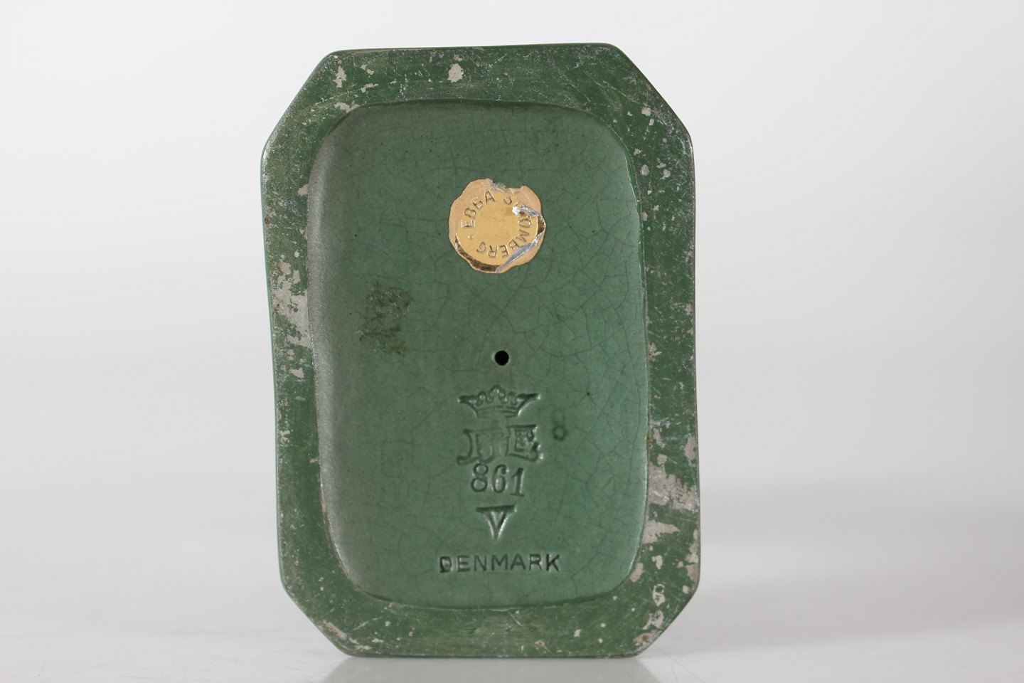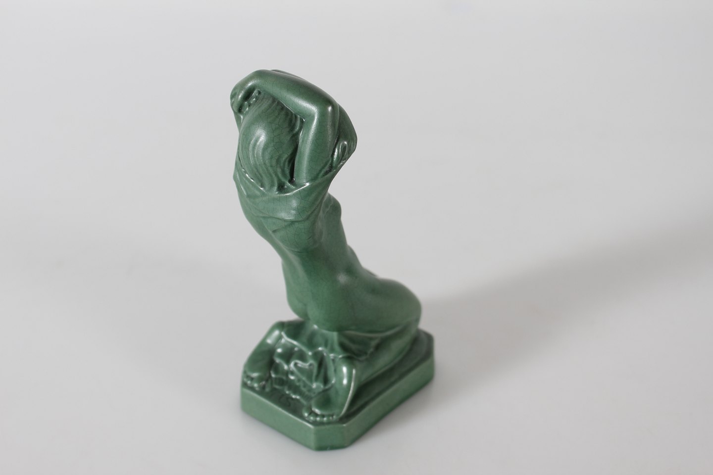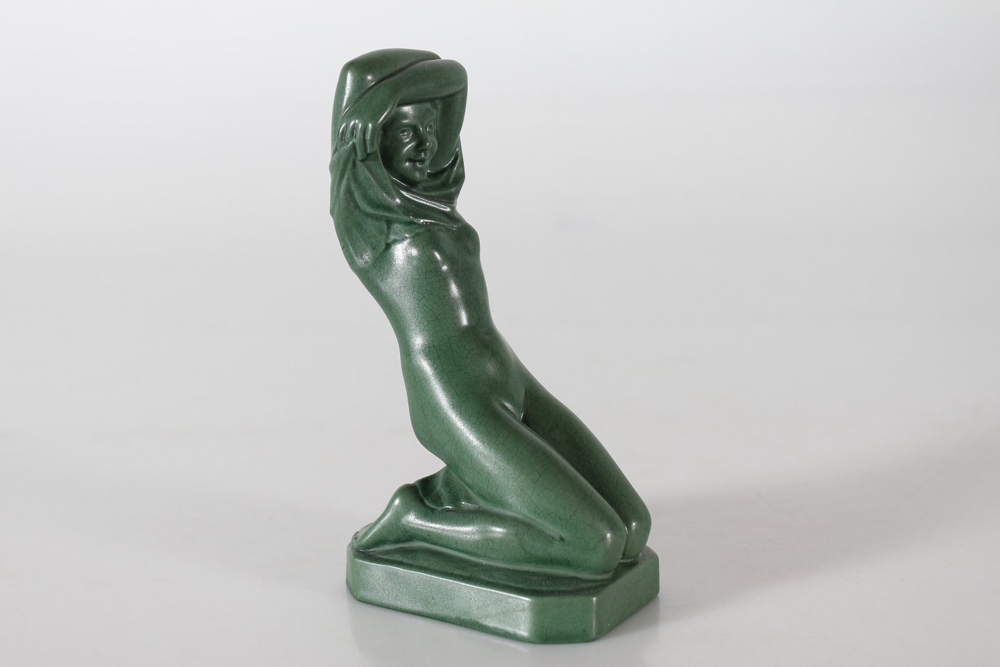 P. Ipsens Enke Figur "Før Badet" knælende pige nr. 861 Formgjort af Axel Sørensen Fremstillet af keramik m/Jadegrøn glasur Højde 15,5 cm Fin stand