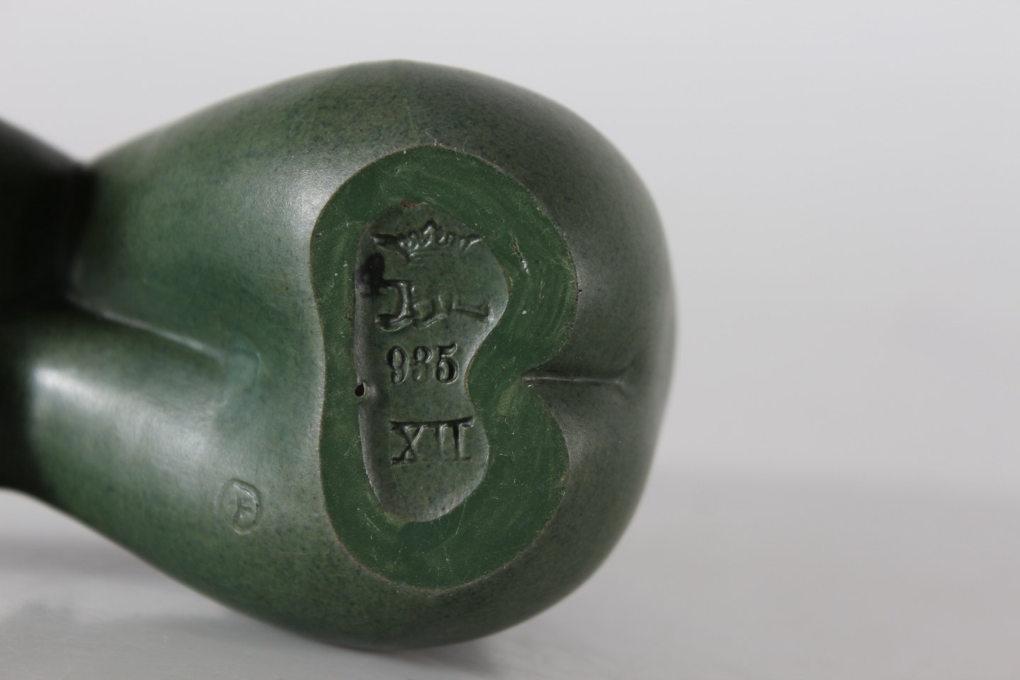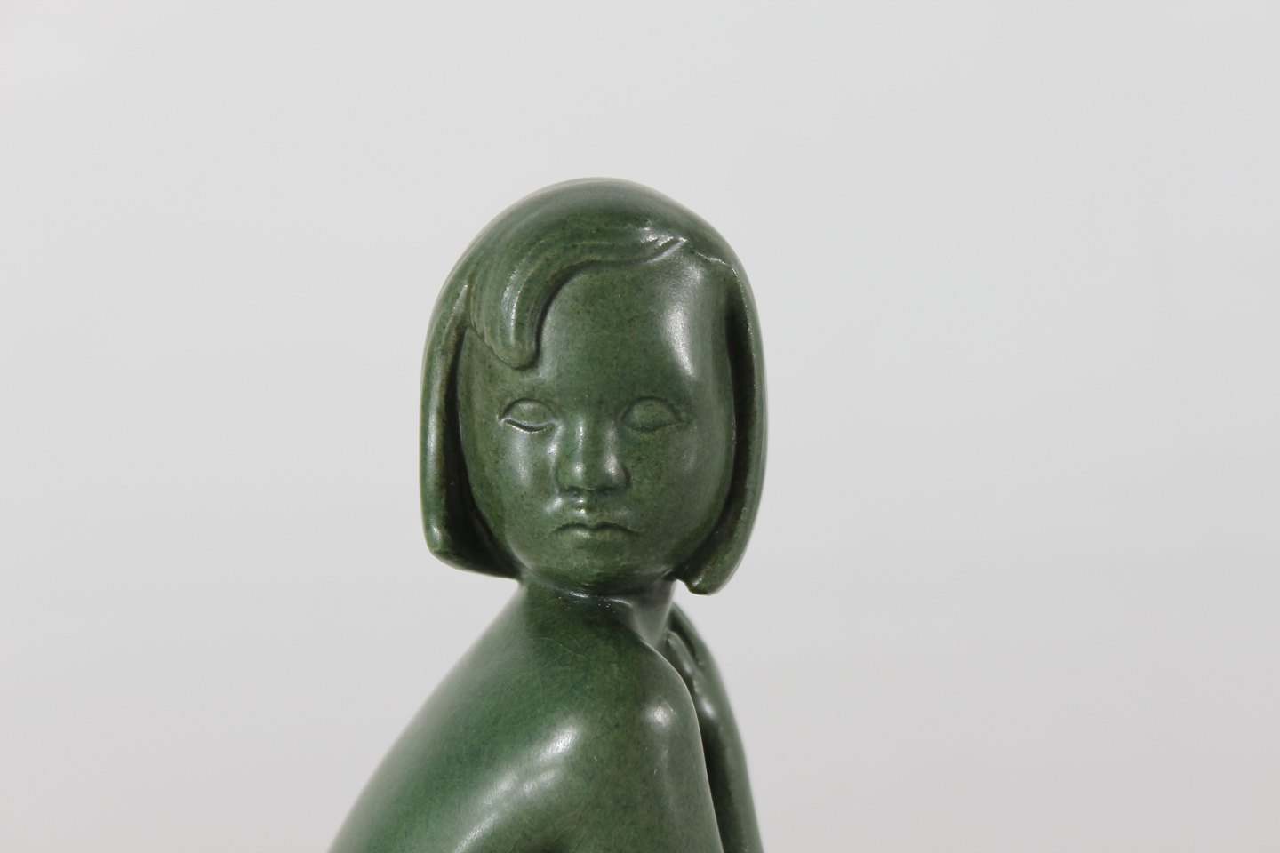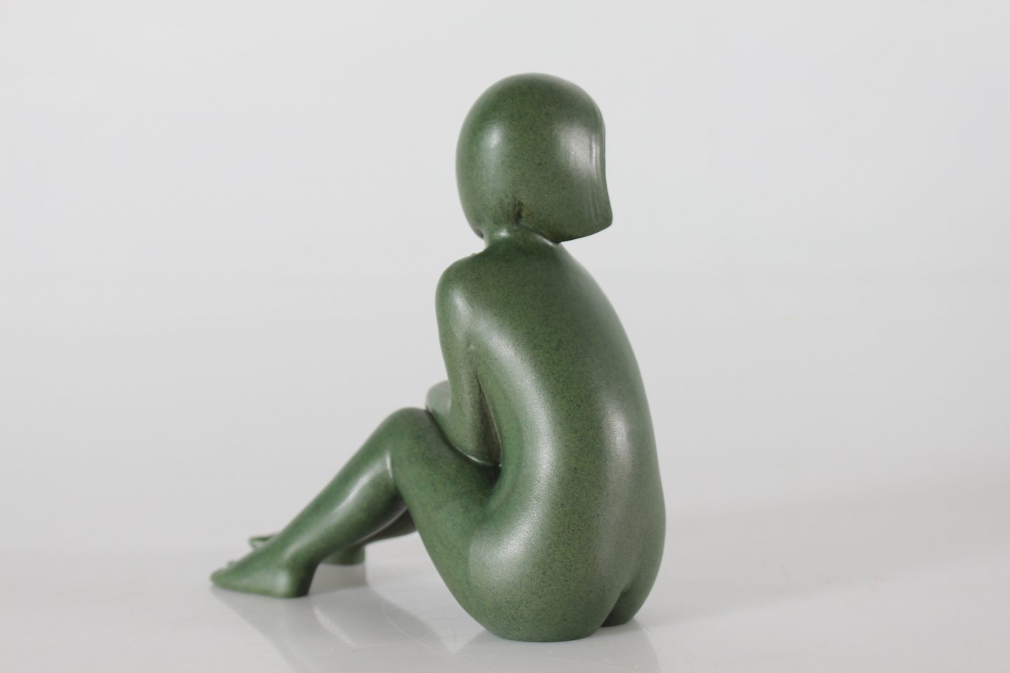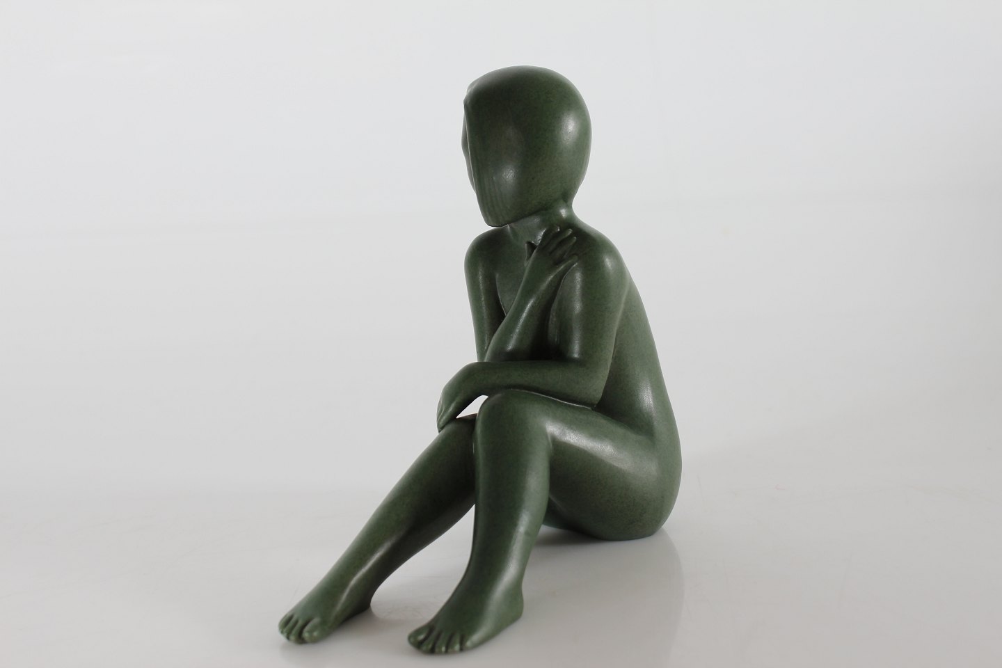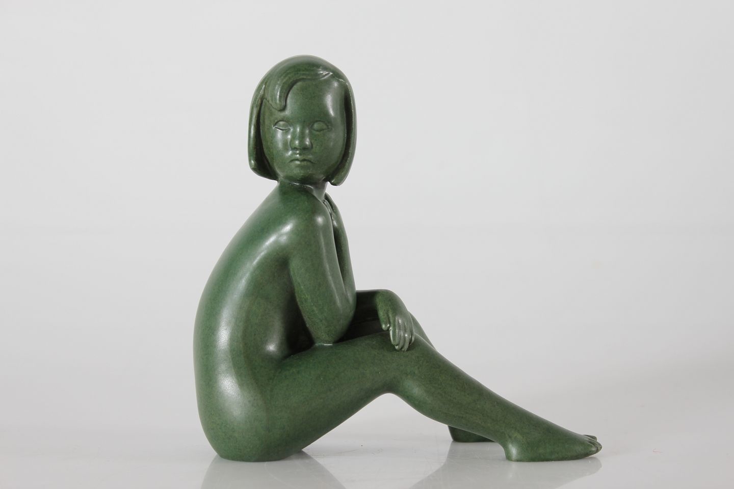 P. Ipsens Enke Figurine of a sitting girl "Susanne" no. 935 designed by Johannes Hedegaard (1915-1999) Made of ceramic with jade green glaze Height 15.5 cm Nice condition - no chips or repair