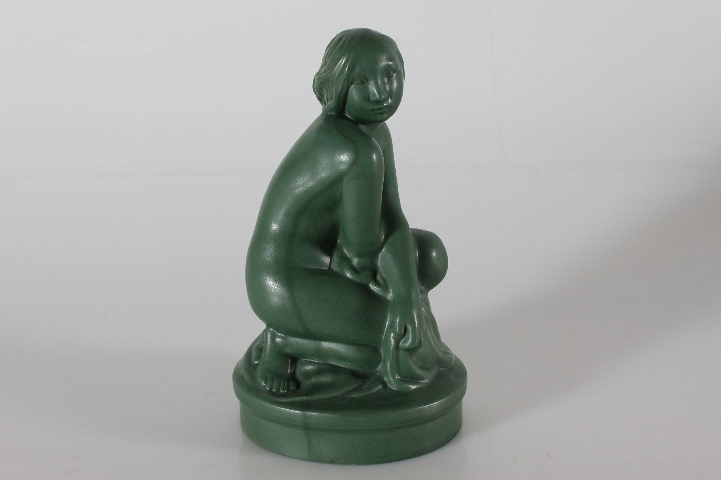 P. Ipsens Enke Figur "Susanne" siddende kvinde nr. 923 formgjort af Holger Christensen Fremstillet af keramik m/jadegrøn glasur Højde 20 cm Fin stand