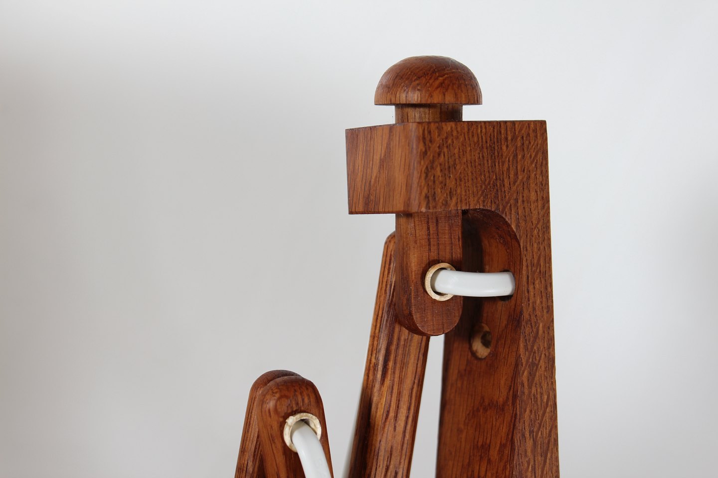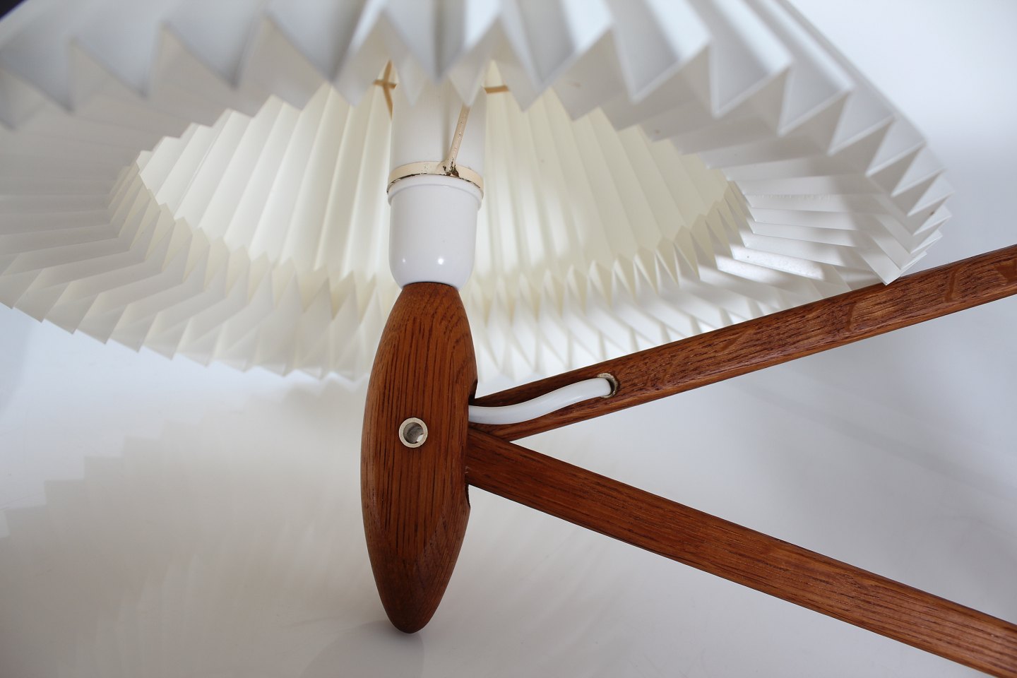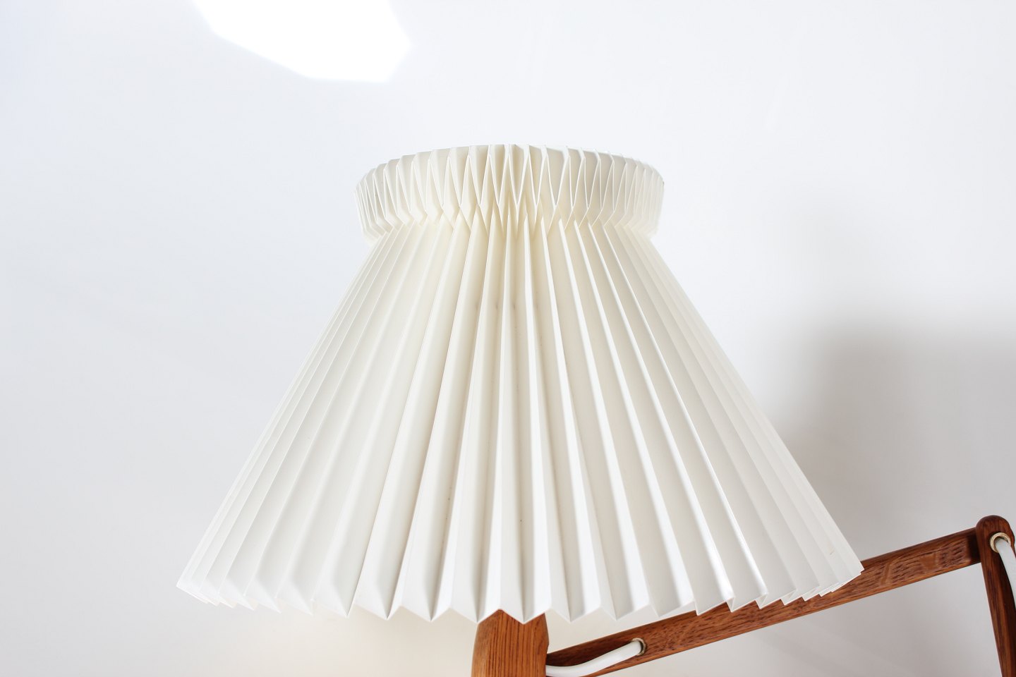 Erik Hansen og Le Klint Saxlampe model 224 af patineret egetræ med original Le Klint skærm Højde med skærm 35 cm Skærm diameter 30 cm Fin funktionsdygtig stand medfølgende original skærm med enkelte knæk