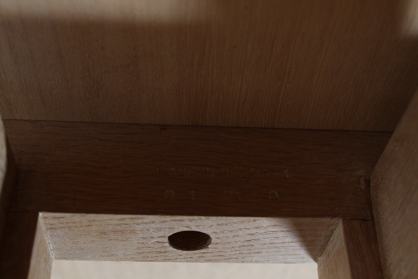 massiv egetræ og ny fineret bordplade.