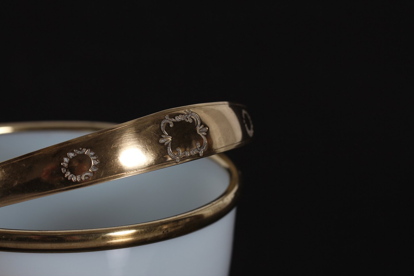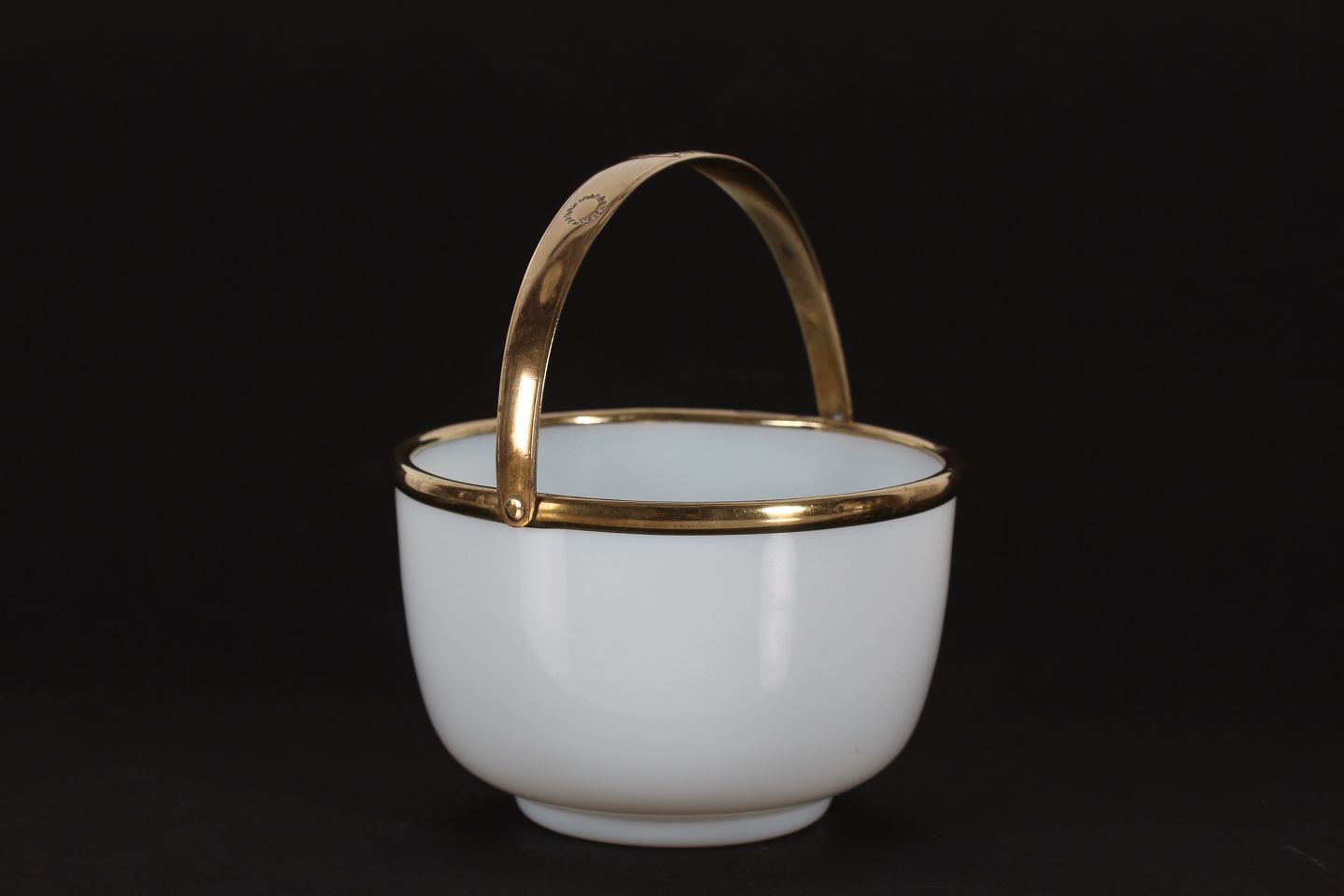 Danish Glasswork Old danish sugar bowl with handle of brass made of milk white glass Height incl. handle 14 cm Diameter 11.5 cm Nice condition - no chips or cracks