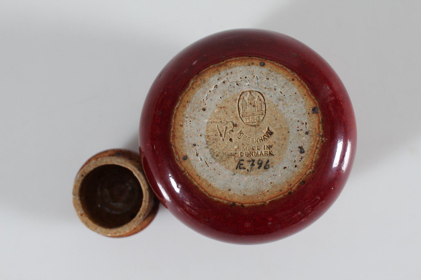 Bing & Grøndahl Valdemar Pedersen (1906-81) Rare small lidded jar of stoneware with glossy oxblood glaze With stamp from the 1950s Height 8 cm Diameter 9 cm Mint condition - 1. quality