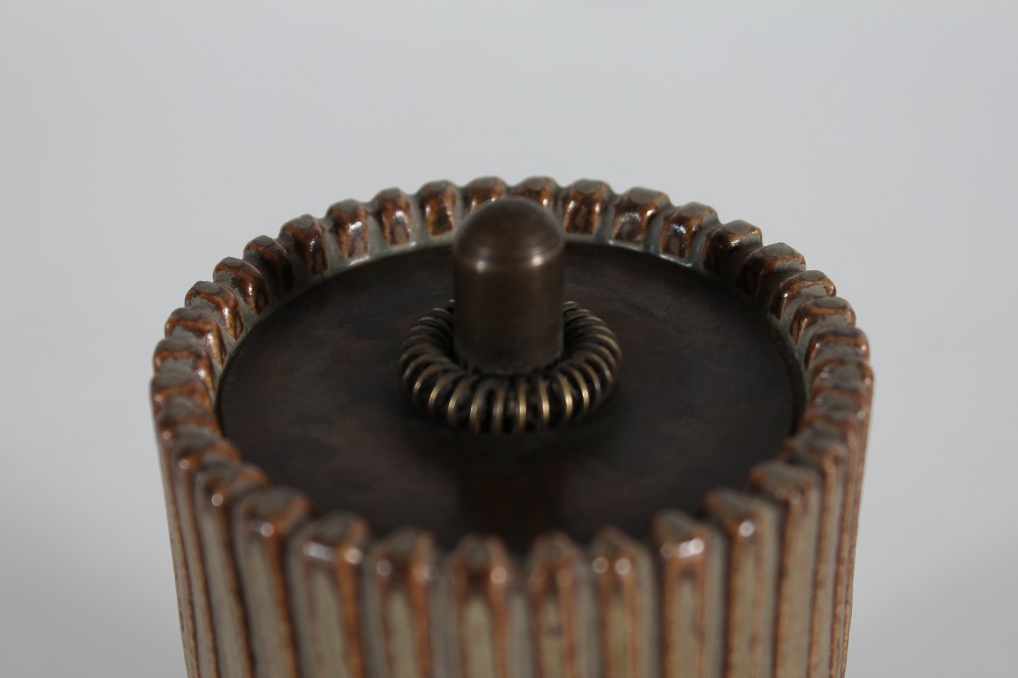 greyish-brown colours with lid of patinated bronze