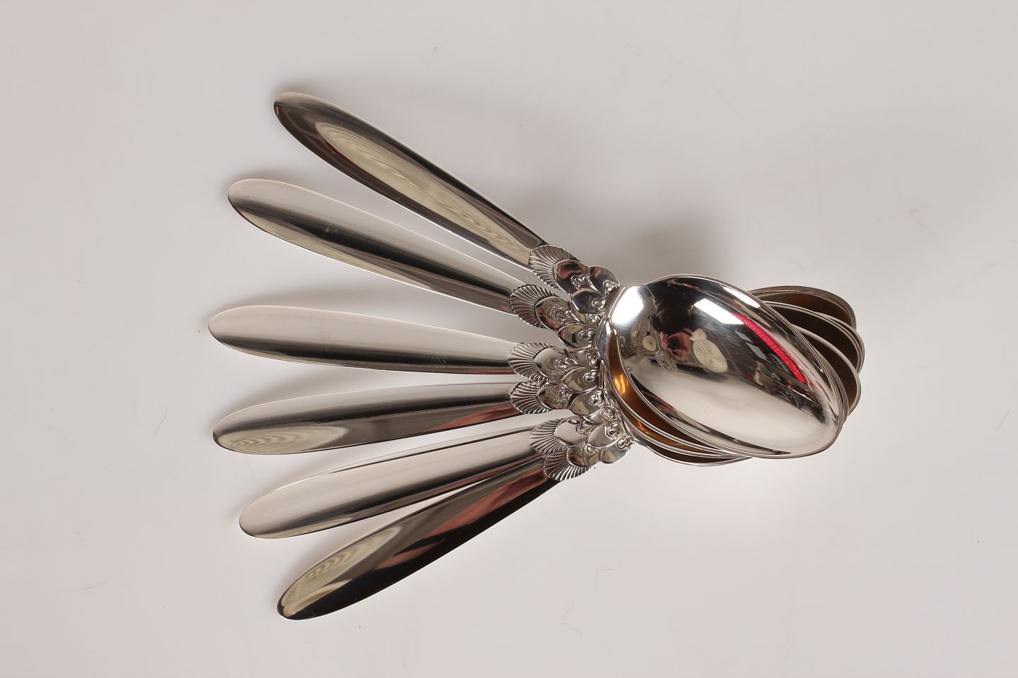 Georg Jensen Sølvsmedie Kaktus bestik af sterling sølv tegnet af Gundorph Albertus i 1930 Store middags- eller suppeskeer Længde 20 cm Med stempel fra perioden 1930-45 Rigtig fin stand