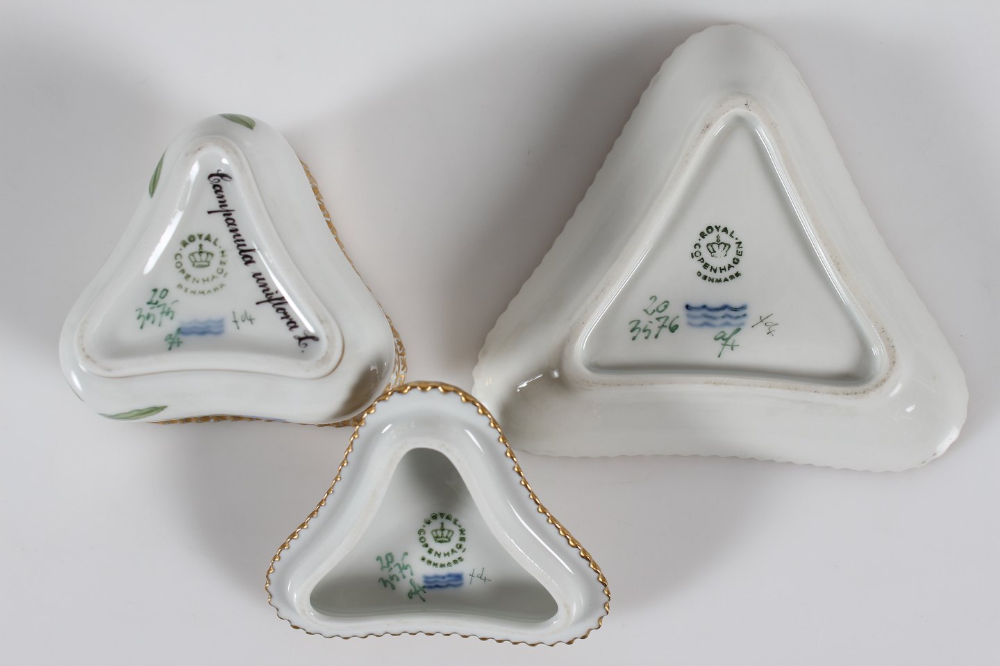 Royal Copenhagen Flora Danica Trekantet cremekop model nr. 20/3576 med stempel fra 1963-74 Dekoreret med "Campanula uniflora L." Højde 9 cm Diameter 10 cm Fin fejlfri 1. sortering