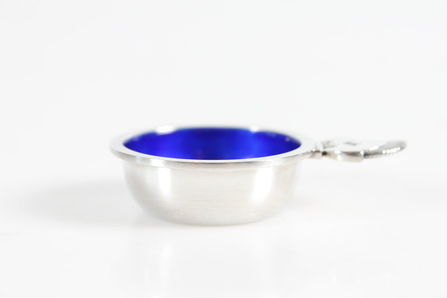 Georg Jensen Sølvsmedie Kaktus bestik af sterling sølv tegnet af Gundorph Albertus i 1930 Saltkar med blå emalje indvendig Med stempel fra perioden efter 1945 Længde 6,5 cm Diameter 4,5 cm Rigtig fin stand