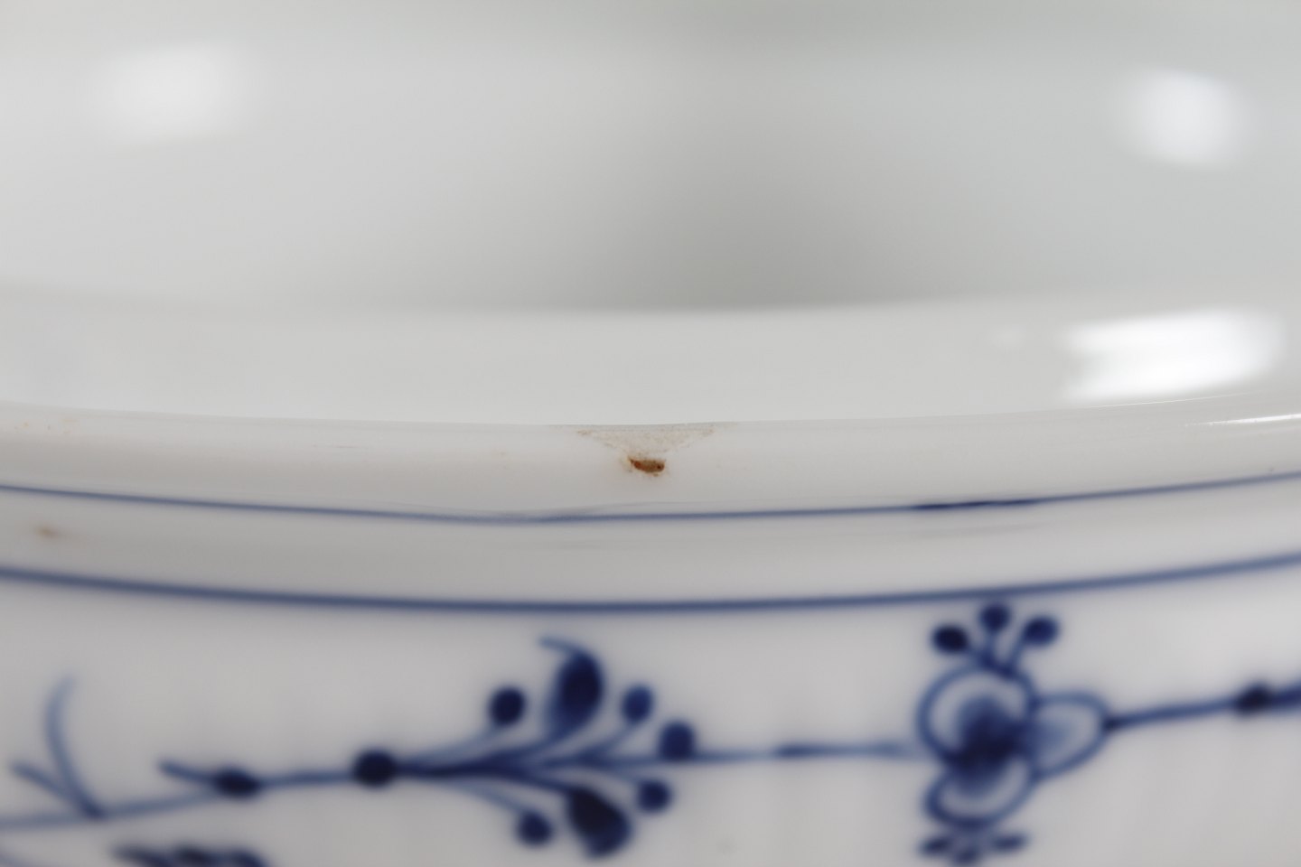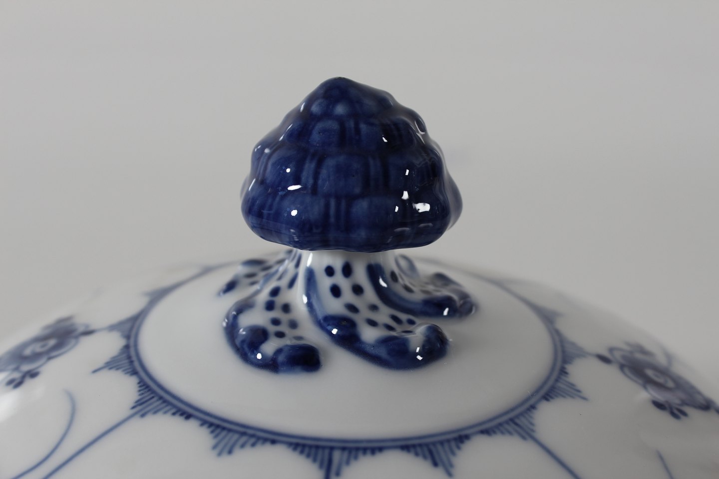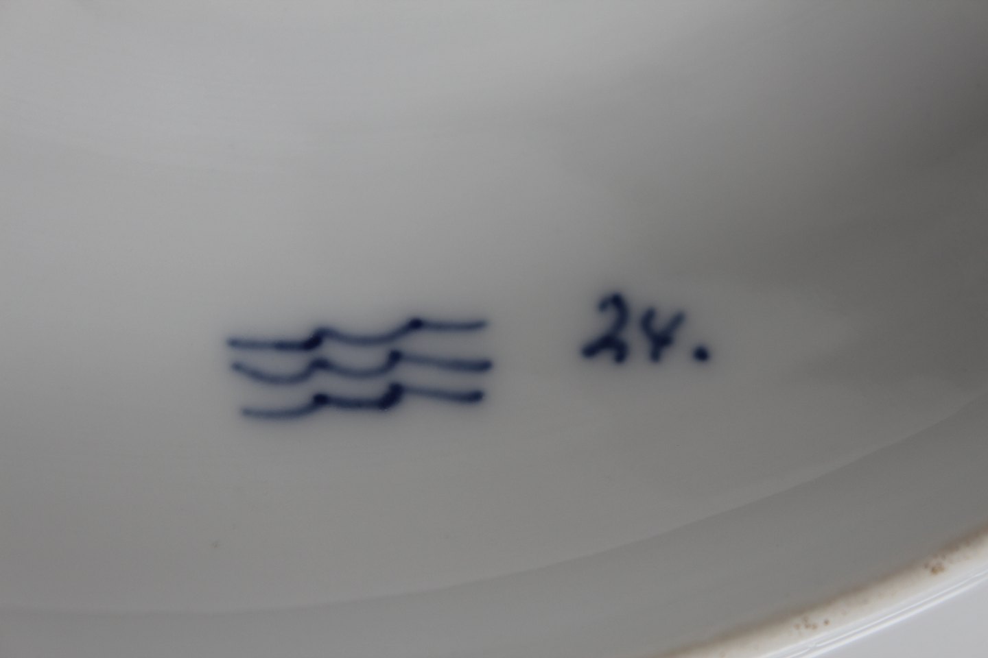 Royal Copenhagen Musselmalet Riflet Antik lågfad med stempel fra perioden 1893-1900 Diameter 23,5 cm Højde 17 cm Fin stand - 1 sortering - se billeder af lille afslag på fadets kant