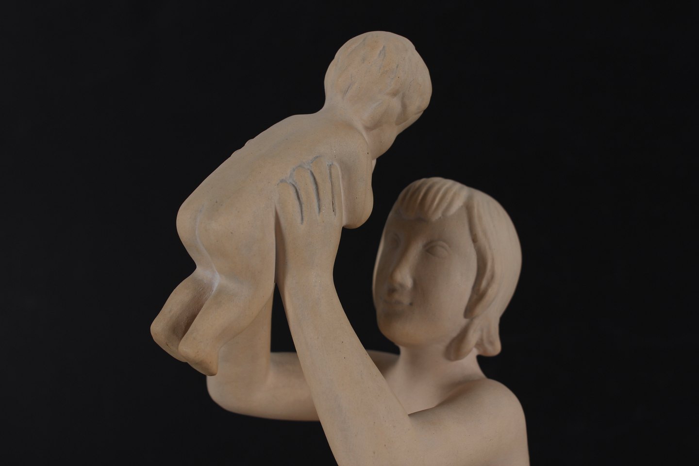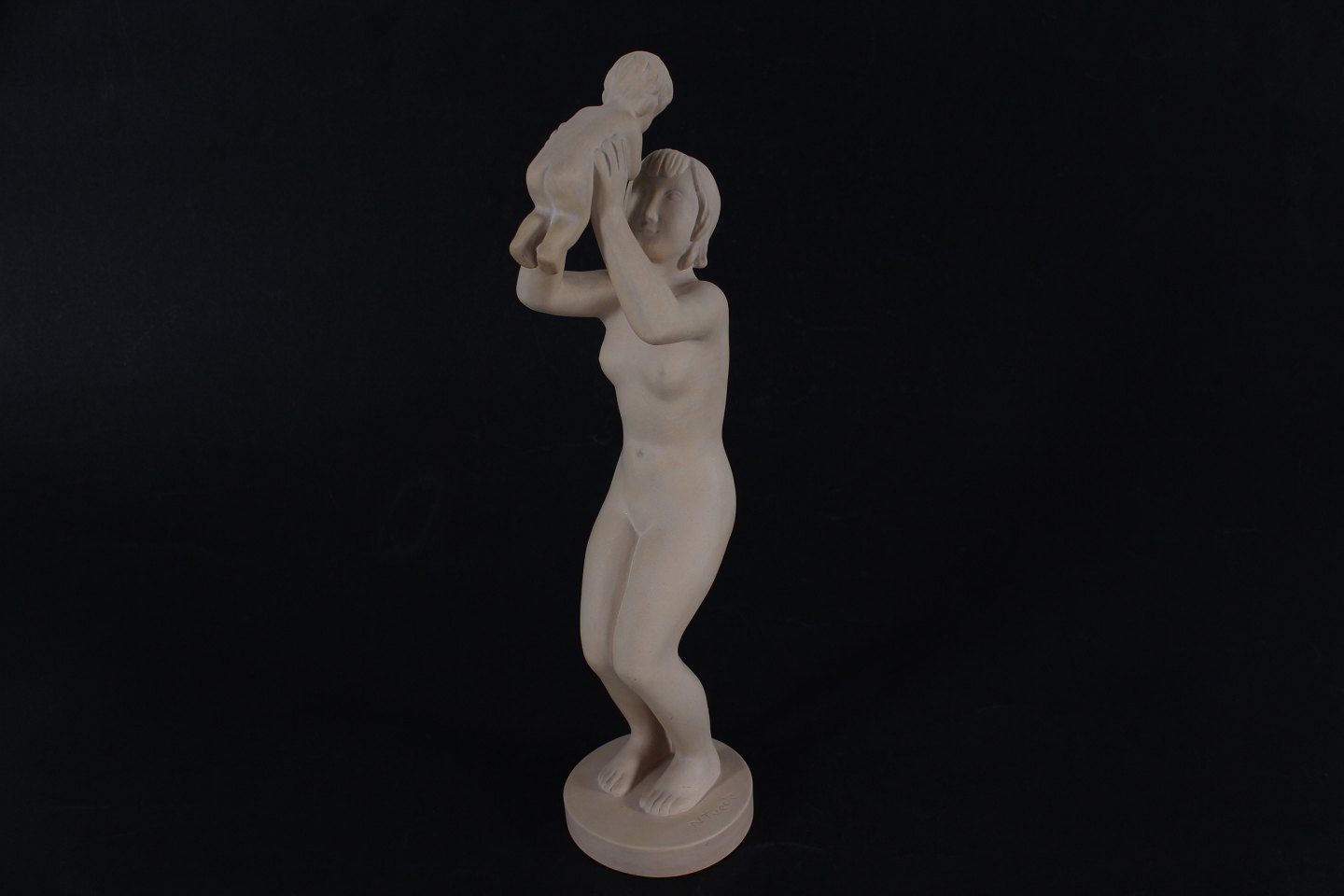 Niels Tvede (1903-1972) Moder med barn figur "Livet" nr. 860 formgjort 1939 fremstillet af uglasseret terracotta Sign: Ipsens Enke + 860 + Denmark + N. Tvede Højde 32 cm Fin stand uden skår eller revner