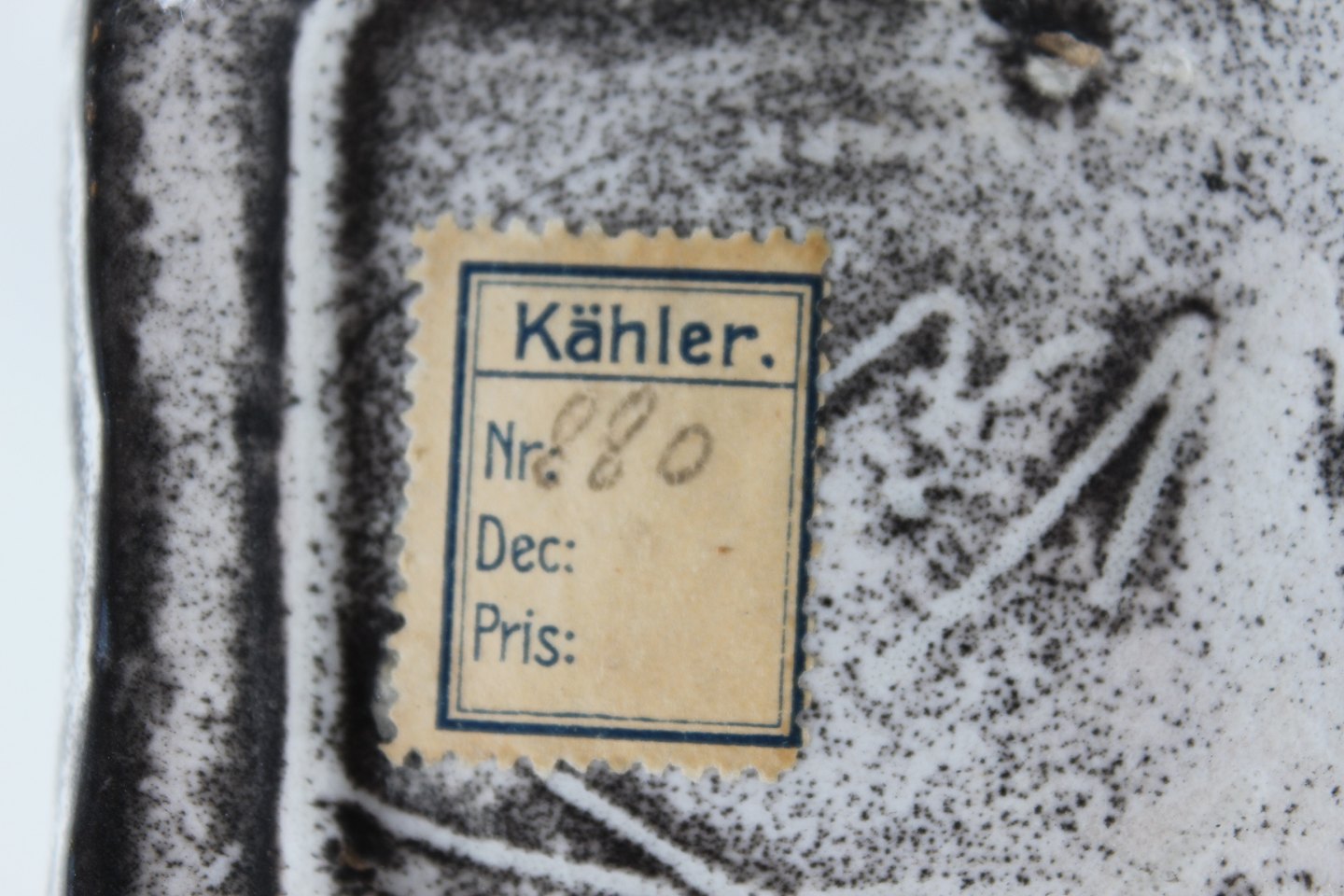 Dekoreret med lys askegrå glasur.